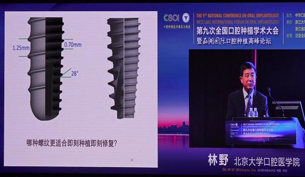 會(huì)議期間國(guó)內(nèi)知名口腔專家針對(duì)當(dāng)前口腔種植領(lǐng)域熱點(diǎn)進(jìn)行了精彩的學(xué)術(shù)演講。其中北京大學(xué)口腔醫(yī)學(xué)院林野教授的演講主題是“種植體設(shè)計(jì)及臨床意義”。